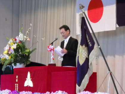 お祝いの言葉は、教育委員会から蔵重統括指導主事、小学校を代表して恩方第一小学校校長の柳村先生、志村PTA会長からの言葉と続きました。