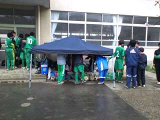 サッカー部は中山中学校のグラウンドで予選リーグ一回戦の開始です。