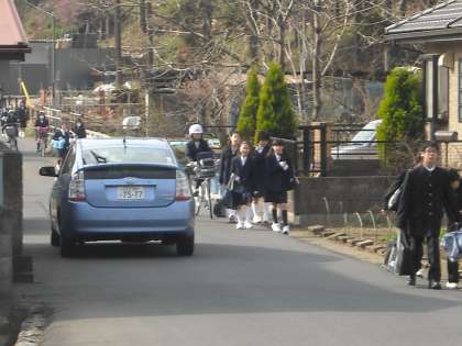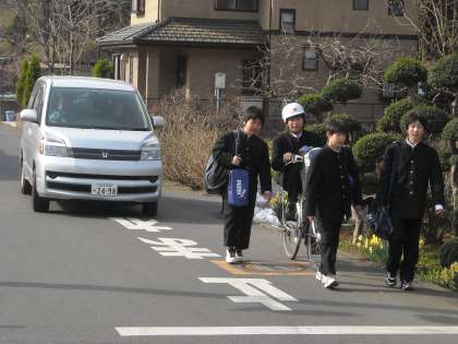 学校前の通りも交通量は多いので注意しましょう。