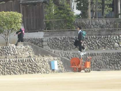 陣馬街道を真っ直ぐ歩いて東側から入って来る生徒もいます。