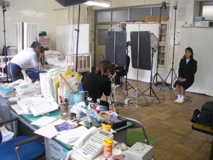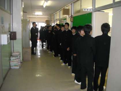 今年度から生徒手帳に顔写真を付けるので、クラス写真と一緒に個人写真を撮りました。みんな緊張した面持ちで撮影されていました。