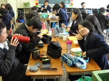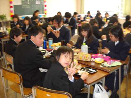 3組は担任の先生がどこかへいなくなっていましたが、生徒は着実にお昼を食べていました。