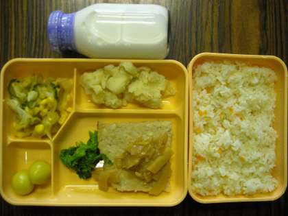 キャロットピラフ・ミートローフ春野菜ソース・ナッツ入りチーズ・ポテト・