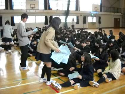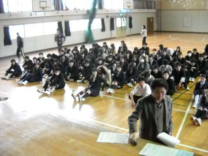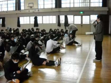 5時間目に体育館で、4クラス合同で進路に関する学習が行われました。