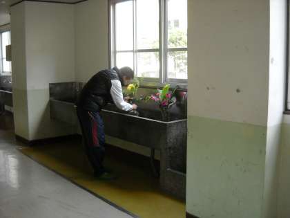 高野先生も、朝早くから花に水をあげるなどのお勤めをしていました。