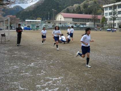 これまでの授業で記録を取り終えていなかった女子も、一緒に計測していました。