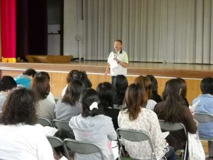 出張のために最後に体育館に来た、ソフトテニス部の粕谷先生のお話の後、各教室で部活動ごとの保護者会となりました。