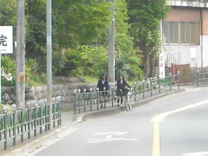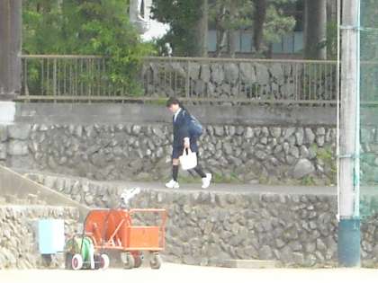 陣馬街道を直進して歩いて来る生徒もいます。