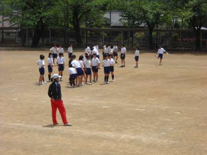 高野先生と坂本先生のTTにより、運動会の競技練習が始まっています。