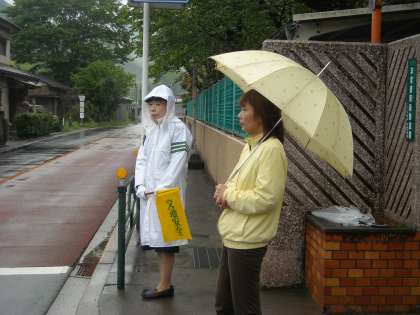 今日の校門当番の樋口先生は、カラーコーディネートにも気を配っていました。