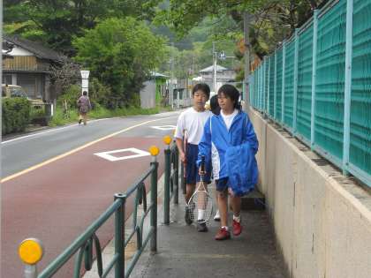 テニス部の1年生が多目的広場での朝練習を終えて戻ってきました。