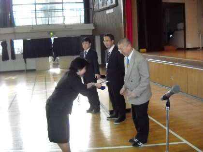 議長の解任後、今回役員を退任される志村さん、野田さん、高田さんに記念品が贈呈されました。