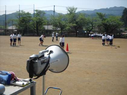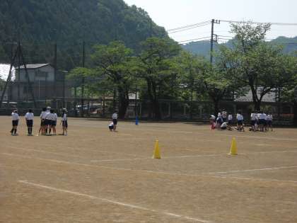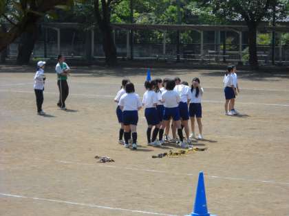 坂本先生と岡先生のTT授業で、運動会競技の練習です。