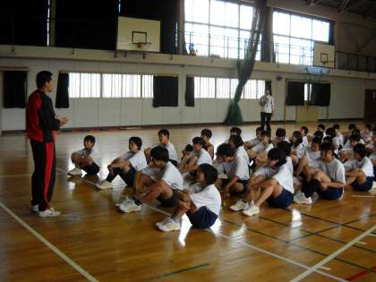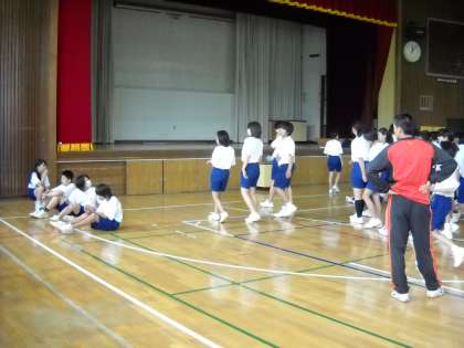 高野先生と坂本先生の指導で、運動会の競技の勉強です。