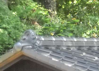 祠の屋根に、キセキレイがとまっていました。
