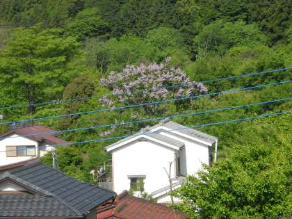 遠くにフジの花がきれいに咲いているのが見えます。
