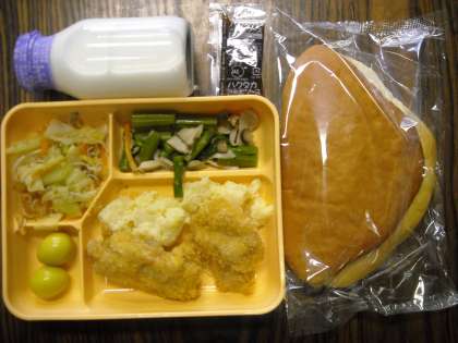 パン・チキンカツ・ナッツ入りチーズポテト・アスパラソテー・