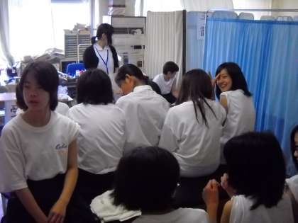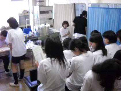 説明を聞いた後体温を計測し、順番に問診を受けます。
