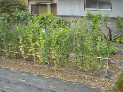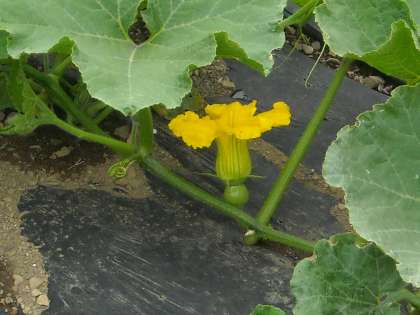 つい先日まで土だけだった正門前の菜園では、いつの間にか、かぼちゃやナスなどが花をつけ実が膨らみ始めています。