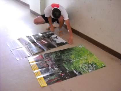 高野先生が3年の修学旅行のポスターを掲示していました。