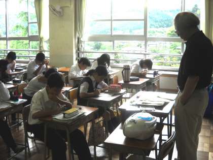 伊地智先生の指導で、テープを使ったヒアリングをしていました。
