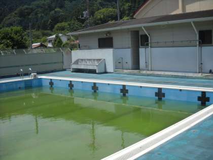 今日は体育の水泳指導開始を前に、9時からプールの水抜きを行っています。
