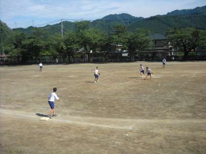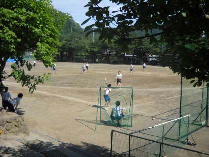 校庭でソフトボールです。