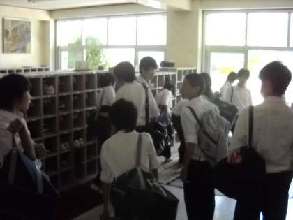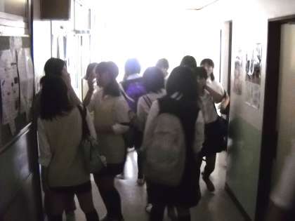一斉に下校するため、職員室前や玄関の人口密度が高まっていました。