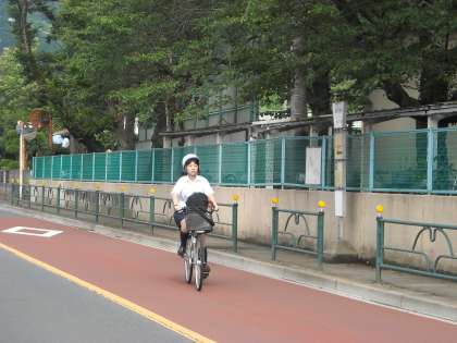上からも自転車で大勢登校して来ます。朝は下りだから楽ですね。