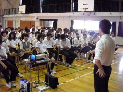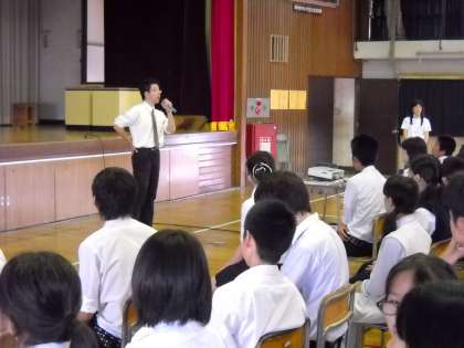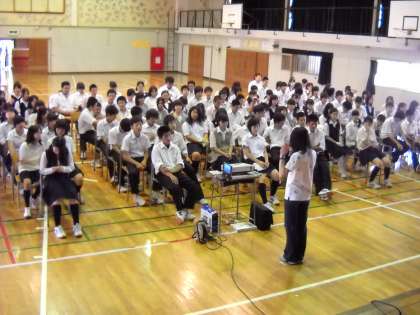 1時間目に体育館で修学旅行に向けての事前学習を行いました。