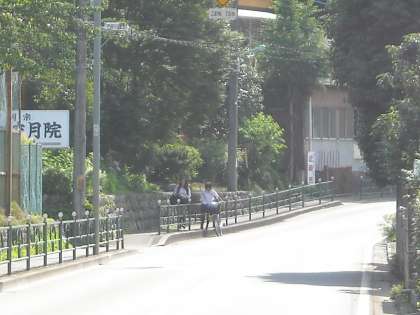 大久保の山沿いの道を歩いてくる生徒も多くいます。