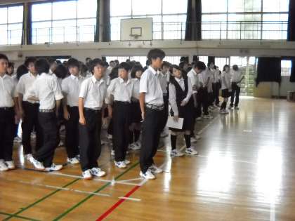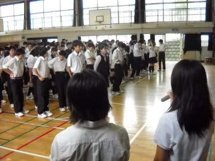 1時間目に体育館で、一学期の反省の学年集会が行われました。