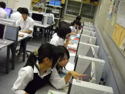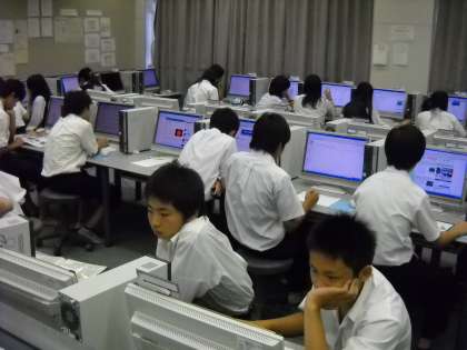 鶴田先生の指導で、パソコン室で公民の調査活動をしていました。