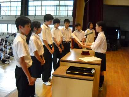 各学年の優秀クラスが、美化委員長より表彰を受けました。
