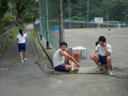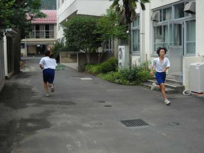 学校の周囲を走り回っていました。