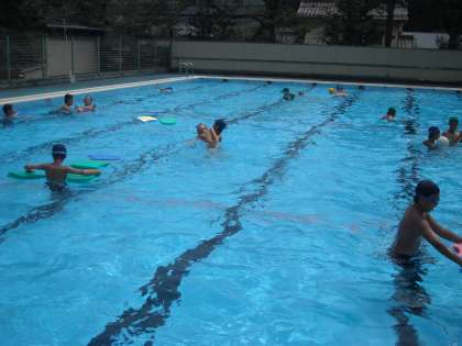 厳しい練習が終わった後はご褒美のプールでクーリングダウンです。