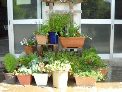 暑さでプランターの植物もつらそうでした。