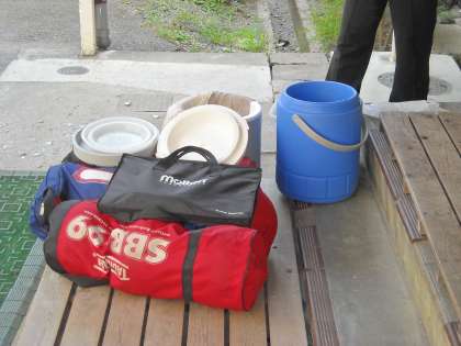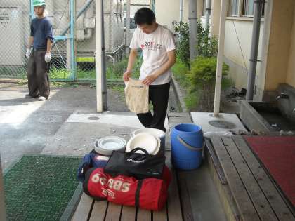 明日の練習試合遠征に備えて、顧問の岸先生が自ら準備をしていました