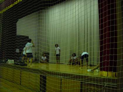 外は雨なので、ステージの上で活動です。