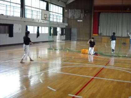 公式テニスボールを使ったノックを行っていました。