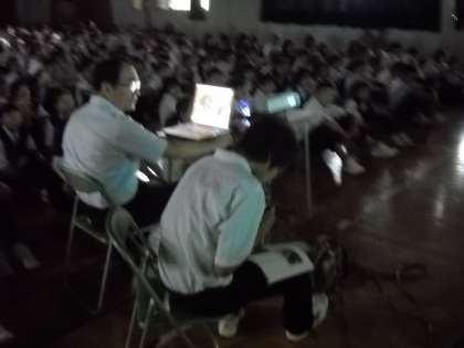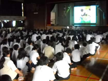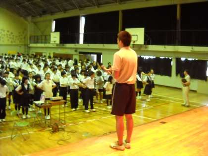 高野先生の整列指導の後、東日本大震災の被災地へのボランティア活動の発表がありました。