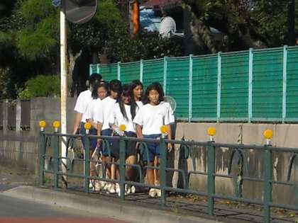 多目的広場で練習していたソフトテニス部の1年生が元気に戻ってきました。