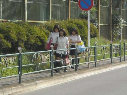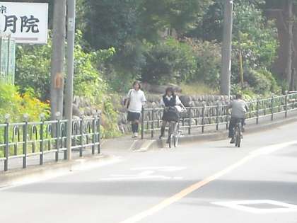 徒歩の生徒の中には陣馬街道を直進してくる生徒もいます。その方が少し短いようです。