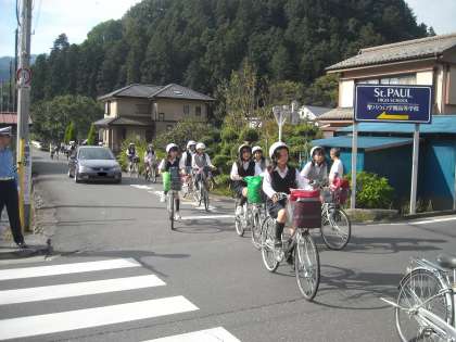 自転車は左側を1列に並んで走行しましょう!