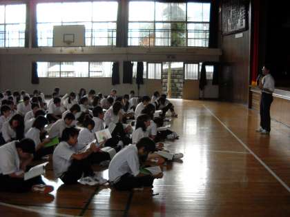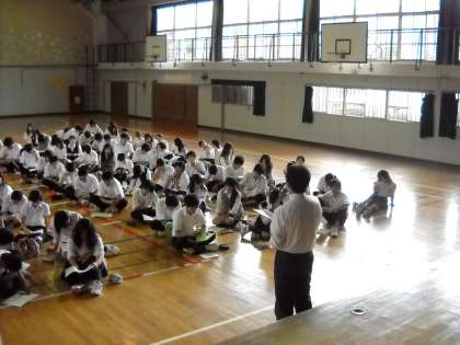 6時間目に体育館で、13日(火)から行われる修学旅行の事前指導が行われました。