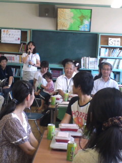 午後からはスタッフが図書室に集まり、反省会です。恩方中からは粕谷先生がお話をしました。
