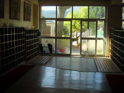 玄関が寂しいですが、1年生が朝から活動を始めて頑張っています。