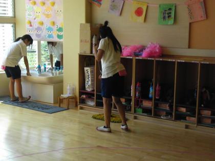 下駄箱前の清掃でした。