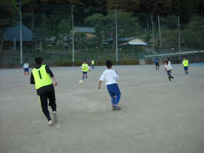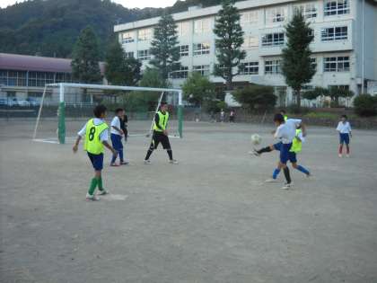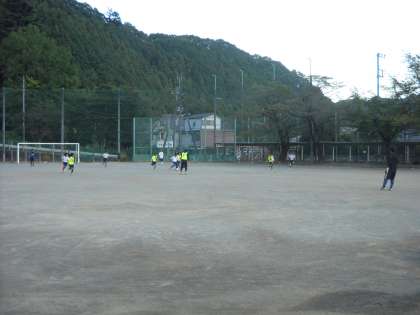 グラウンドでは山下コーチの指導のもとで、サッカー部が正式練習です。