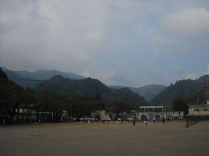 まわりの山には、薄い雲がかかっていました。